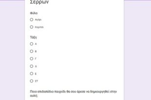 Διαβάστε περισσότερα...Ερωτηματολόγιο προς γονείς 19ου Δ.Σ. Σερρών και 12ου Δ.Σ. Σερρών για χρήση Υπολογιστή και Ίντερνετ